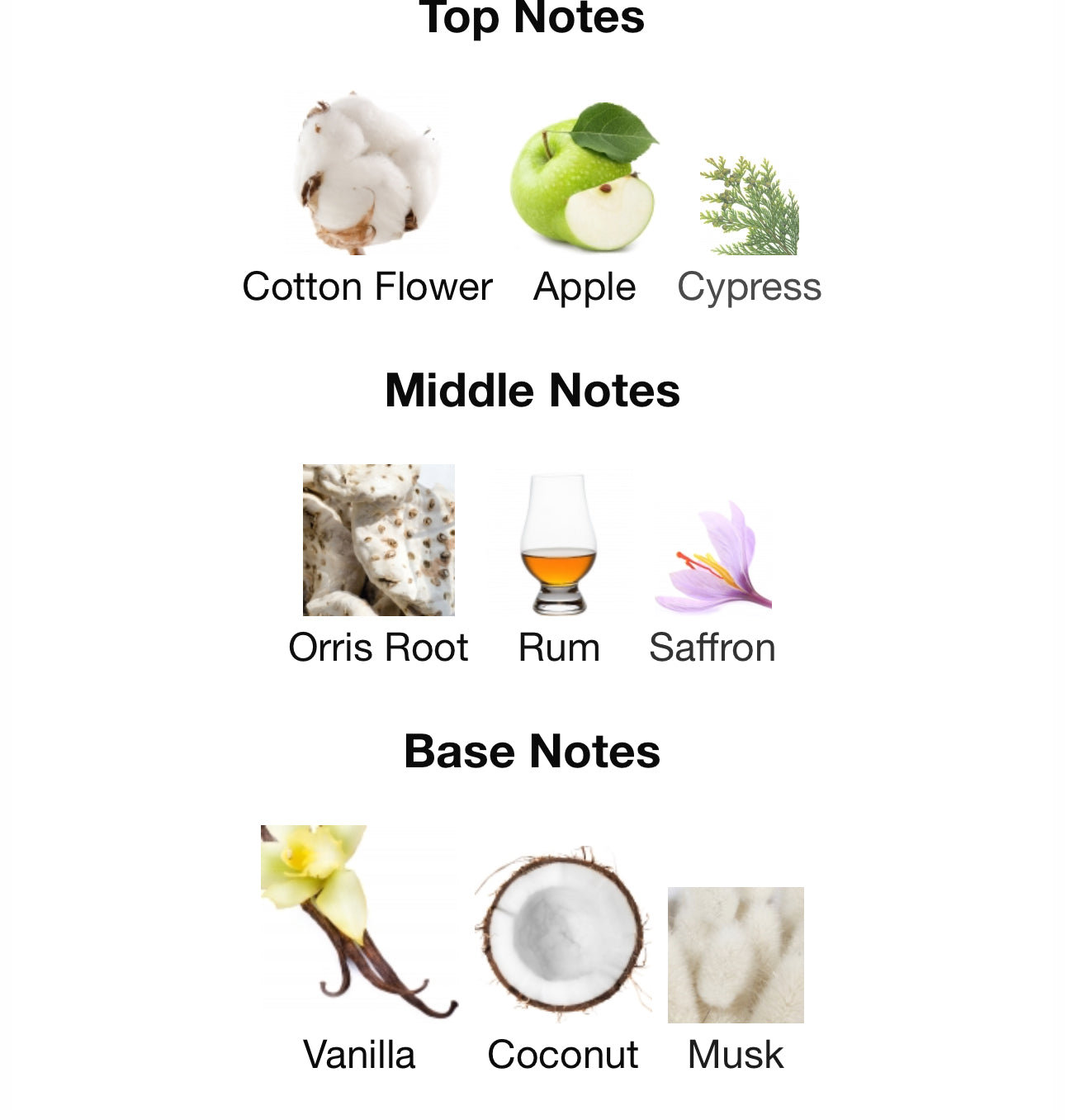 It opens with soft cotton flower and crisp green apple drifting through clouds of cypress smoke, while the heart pulses with rum-soaked saffron and ghostly orris root.