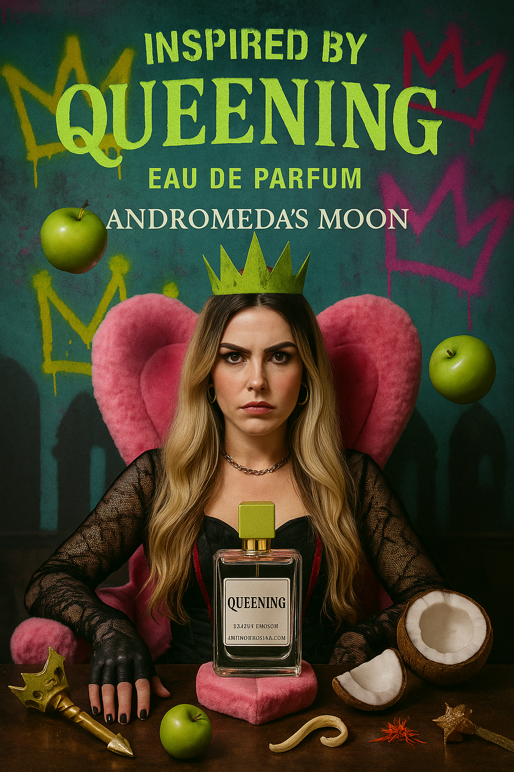 Strut to the throne — or burn it down. Inspired by Queening is a surreal, rebellious gourmand wrapped in velvet petals and sugar-laced thunder.