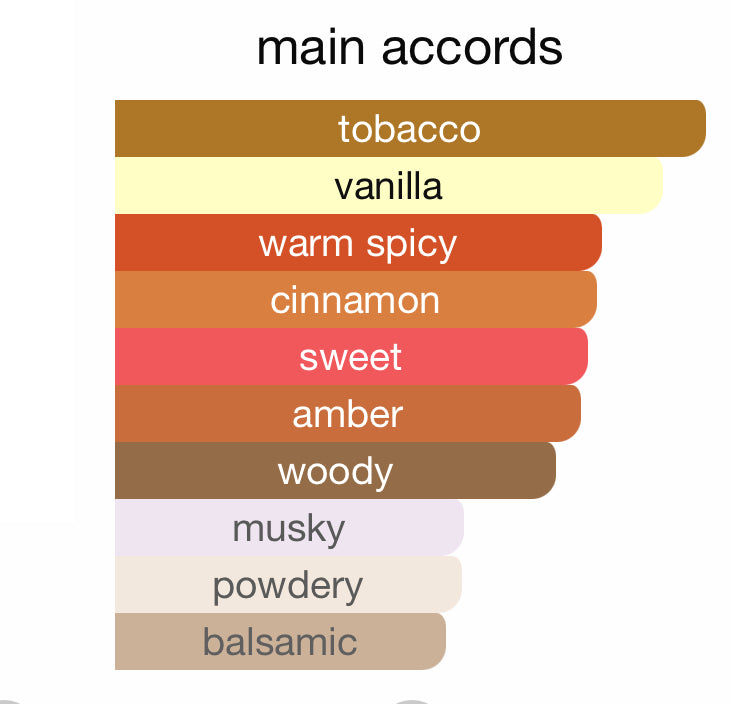 - Heart: Tobacco Leaf, Incense, Osmanthus, Labdanum