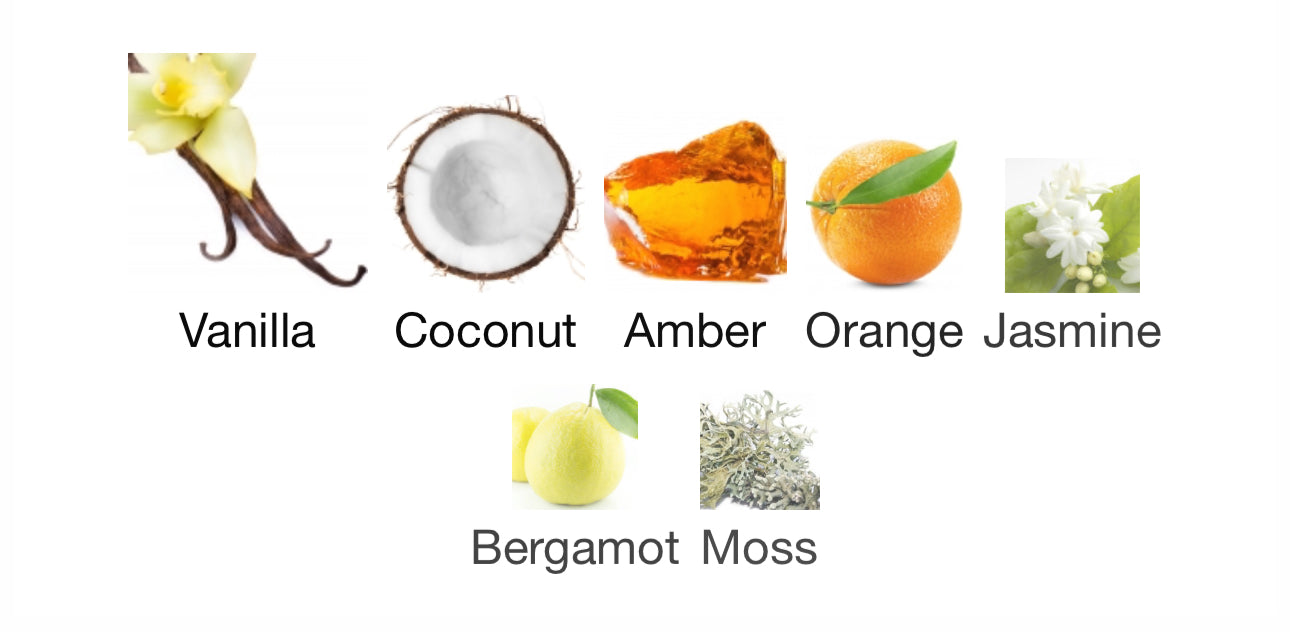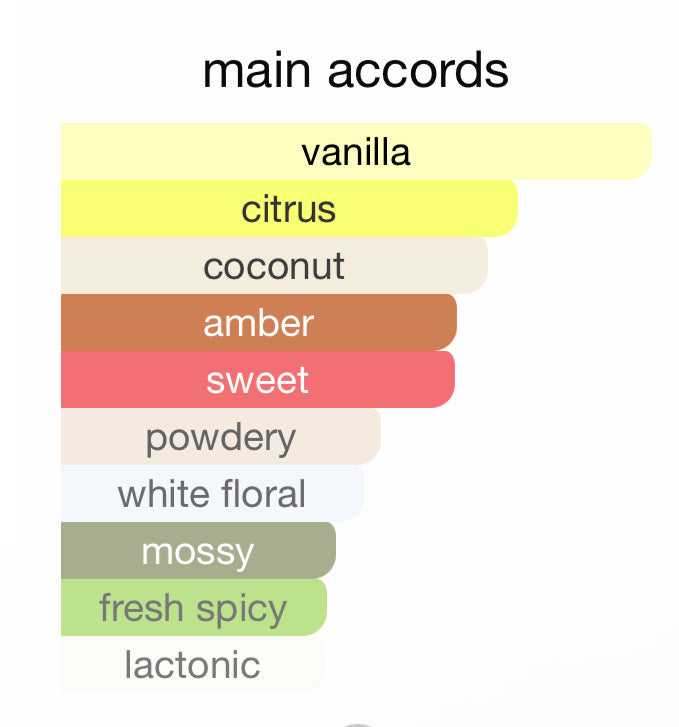 Think sun-kissed coconut floating through a veil of jasmine petals, drizzled with silky vanilla and warmed by honeyed amber. Bright pops of orange and sparkling bergamot lift the opening, while a whisper of moss adds soft, skin-hugging depth. It’s a milkshake-glow dream with a touch of candy-drip sparkle—romantic, airy, and joyfully luminous.